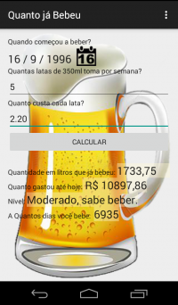 Quanto tempo bebe: Calcula o quanto já gastou com cerveja, a quanto tempo bebe e qual seu nível de apreciador de cerveja.